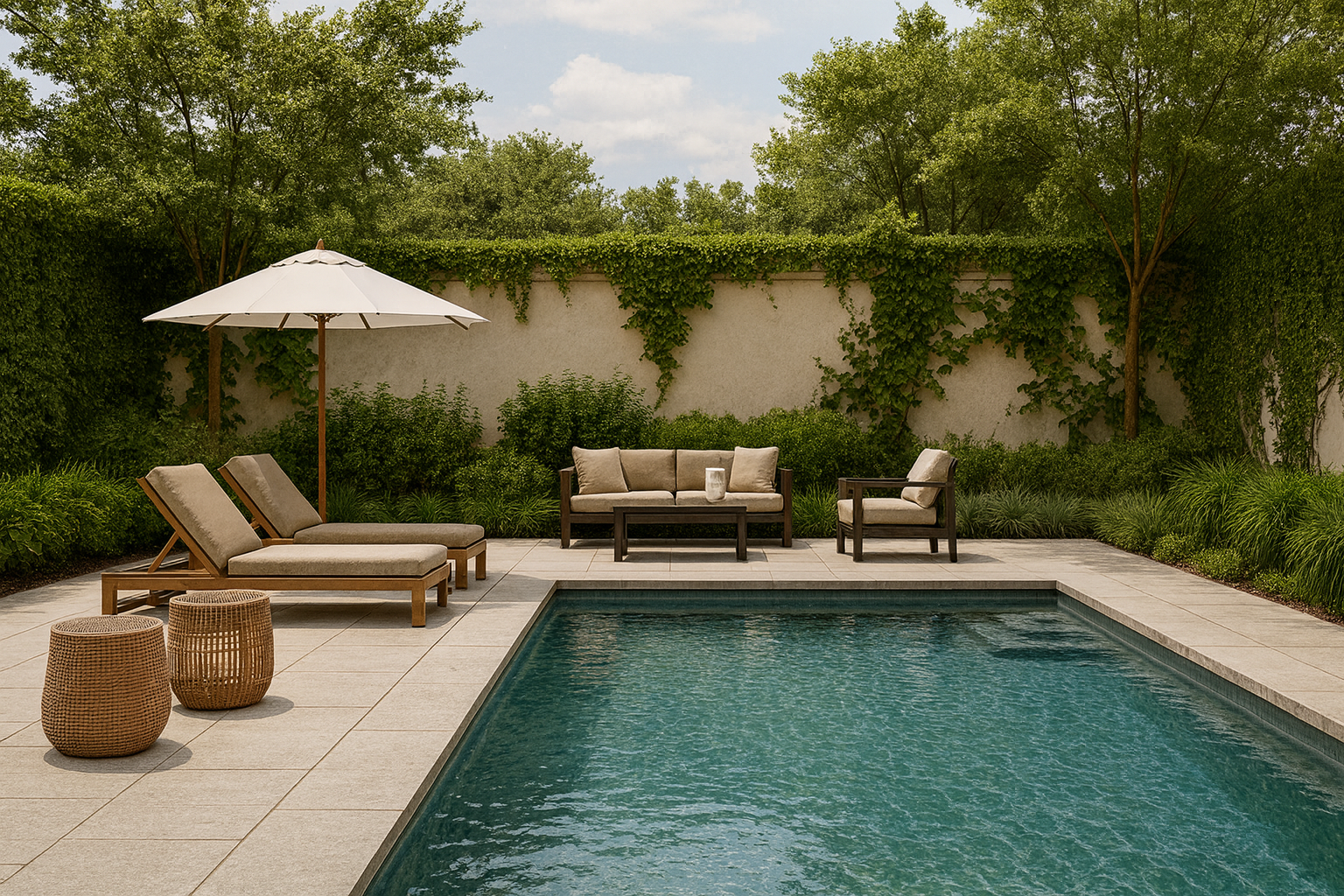 İzmir’in sıcak iklimine uyum sağlayan bu havuz başı peyzaj tasarımı, modern yaşamın konforunu doğayla buluşturmak üzerine kurgulandı. Geniş ahşap zemin kaplamaları, doğal taş dokular ve tropik bitki çeşitleriyle çevrelenen alan, gün boyu ferahlık hissi sunarken akşam saatlerinde zarif aydınlatma detaylarıyla huzurlu bir ambiyans oluşturuyor. Şezlong ve oturma alanlarının ergonomik yerleşimi, hem estetik hem de kullanım açısından denge sağlıyor. Minimal çizgilere sahip bu tasarım, İzmir’in enerjisini ve deniz kenarı atmosferini yansıtarak dinlendirici bir yaşam alanı haline getirildi.