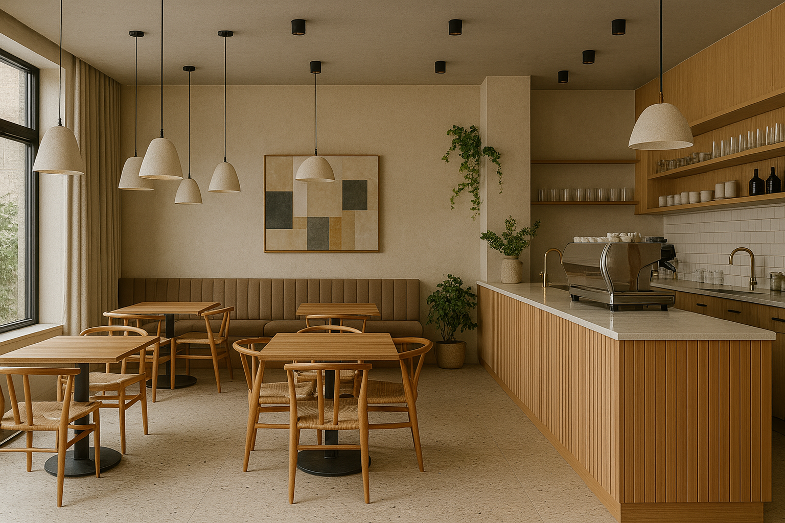 Eskişehir’in genç ve dinamik ruhundan ilham alan bu kafe tasarımı, modern endüstriyel dokularla sıcak ahşap detayların dengeli bir birleşimini sunuyor. Geniş cam cepheler sayesinde gün ışığı içeri süzülürken, bitkilerle zenginleştirilen alan ferah ve doğal bir atmosfer yaratıyor. Oturma düzeninde konfor ön planda tutulurken, barista alanı sade ama etkileyici bir biçimde konumlandırıldı. Yumuşak aydınlatmalar, sıcak tonlu duvar dokuları ve özgün dekoratif unsurlar, misafirlerin kendilerini samimi ama stil sahibi bir mekânda hissetmelerini sağlıyor. Bu tasarım, Eskişehir’in şehir kültürünü modern bir kafe deneyimiyle bir araya getiriyor.